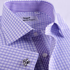 Purple Double Plaid Mens Clothing Formal Business Shirt Checkered Boss Fashion