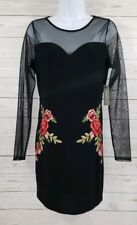 Sweet Rain Large Bodycon Dress Black Floral Embroidered Mesh Sheer Sleeve