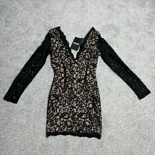 Missguided Anais Black Nude Lace Plunge Neck Mini Bodycon Dress Size 10